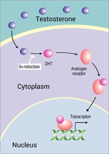 Dacă putem influența acest lucru într-o oarecare măsură, vom avea rezultate, deși, evident, influența hormonală nu se află în domeniul nostru de practică prin nici un fel de imaginație, enzima numită 5a-reductază, în special, 5a-reductază de tip 1, care este relevantă în piele.