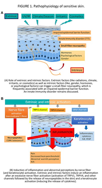 Aceste studii au arătat că un sindrom de piele sensibilă/piele sensibilă este o tulburare neuropatică din cauza unei disfuncții a fibrelor nervoase intra-epidermale (IENGF) care include fibrele C.